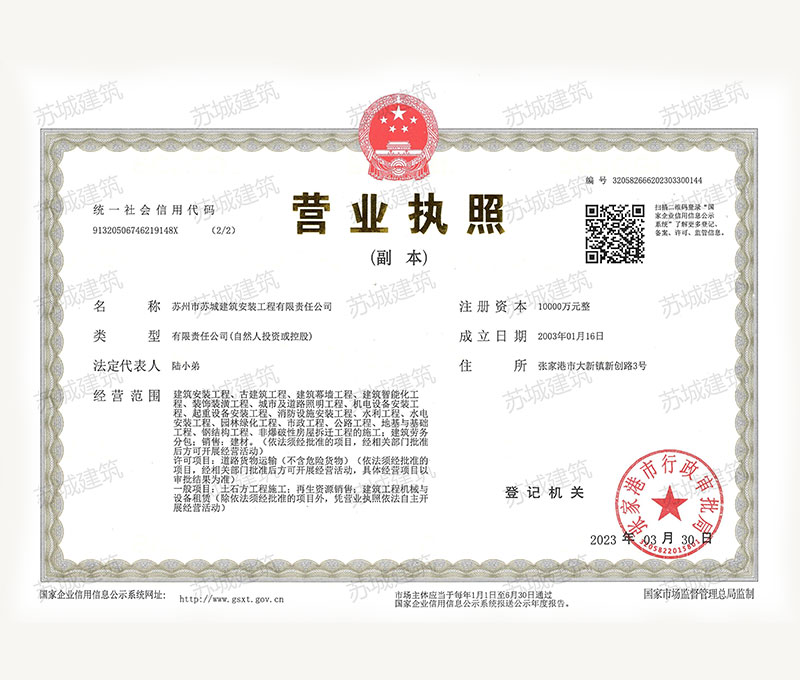 裝飾工程專業(yè)承包二級資質(zhì)。公司注冊資本壹億元人民幣,經(jīng)營范圍涉及房屋建筑施工與安裝、古建筑工程、建筑幕墻工程、建筑智能化
